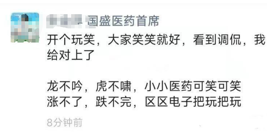 3)有首席开心的合不拢嘴,直接开始嘲笑电子研究员了。彼时的2024年3月,医药被调侃的如过街老鼠,如今的电子却不小心成了那个低到尘埃里的男人:龙不吟,虎不啸,小小医药可笑可笑;涨不了,跌不完,区区电子把玩把玩。