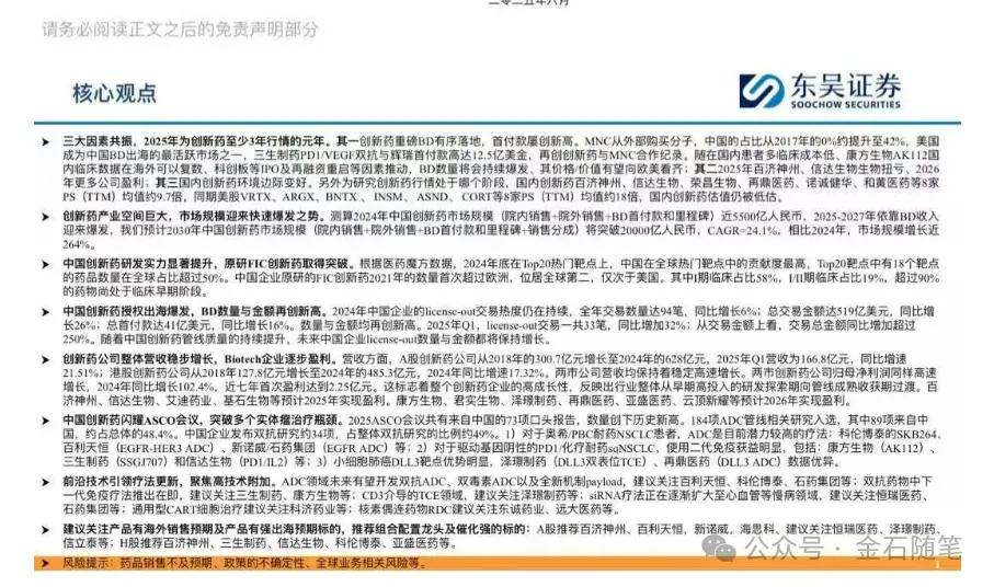 3)东吴证券发表研报,三大因素共振,2025年为创新药至少3年行情的元年。创新药重磅BD有序落地,首付款屡创新高;百济神州、信达生物生物扭亏、2026年更多公司盈利;国内创新药环境边际变好,估值仍处于低估状态。
