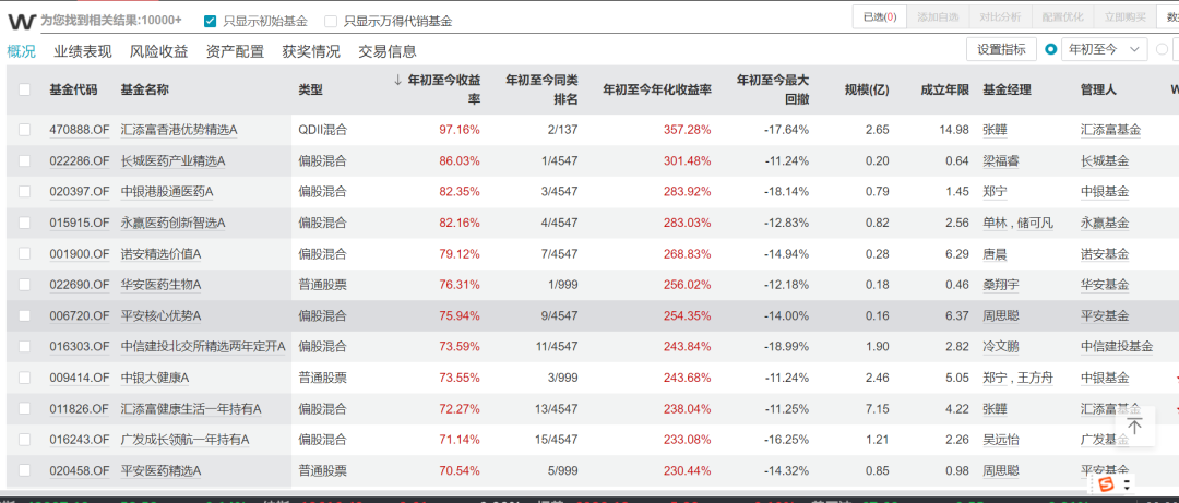 无疑,现在的创新药已成为市场绝对的王者,曾经的医药基金经理也已成为了香饽饽。涨幅好的清一色的医药基金,汇添富、长城、永赢等纷纷再累。